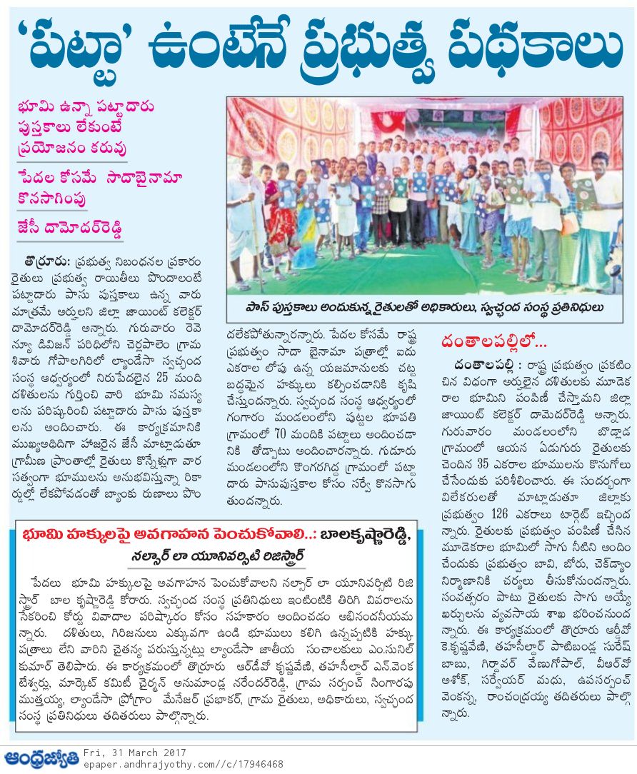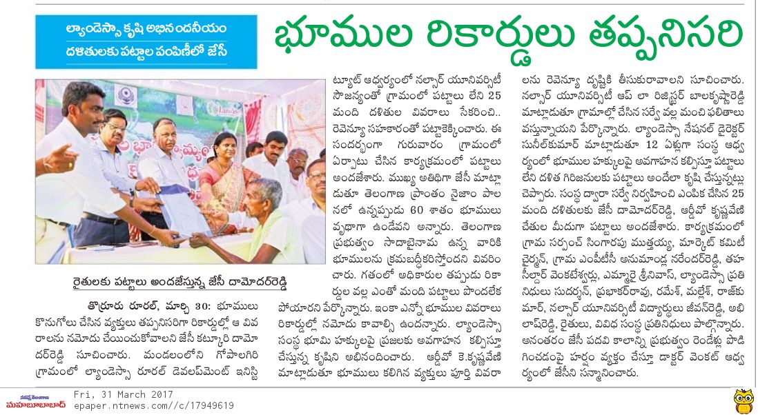 Nalsar Law Of University, under the supervision of V. Balkista Reddy in association of Telangana Government has conducted a camp of Land Registration