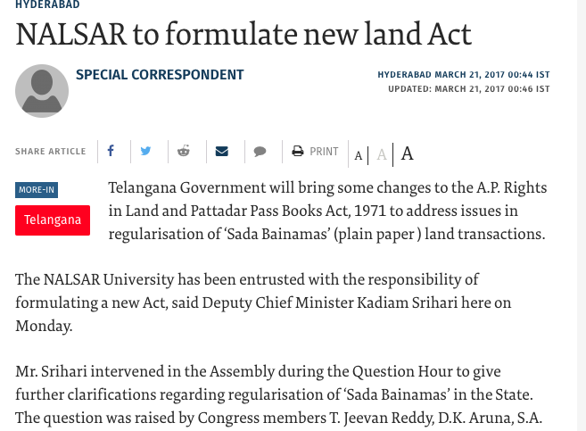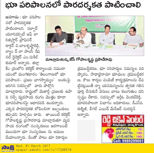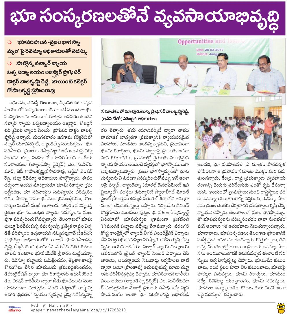 Land Management System to be implemented nalsar in all the districts of Telangana and Nalsar Law University has taken the initiative